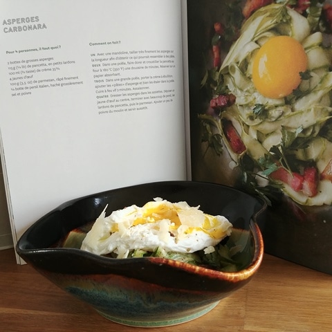 Après une escapade en Italie, j’ai voulu simplement rassembler des ingrédients comme un œuf poché, des pointes d’asperges, des rubans d’asperges taillés à l’économe, des amandes effilées et grillées, assaisonné de l’élégant sel Été N°7 de La Pincée.